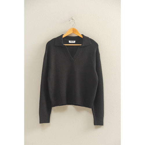 BLACK ASYMMETRICAL NECK SWEATER TOP